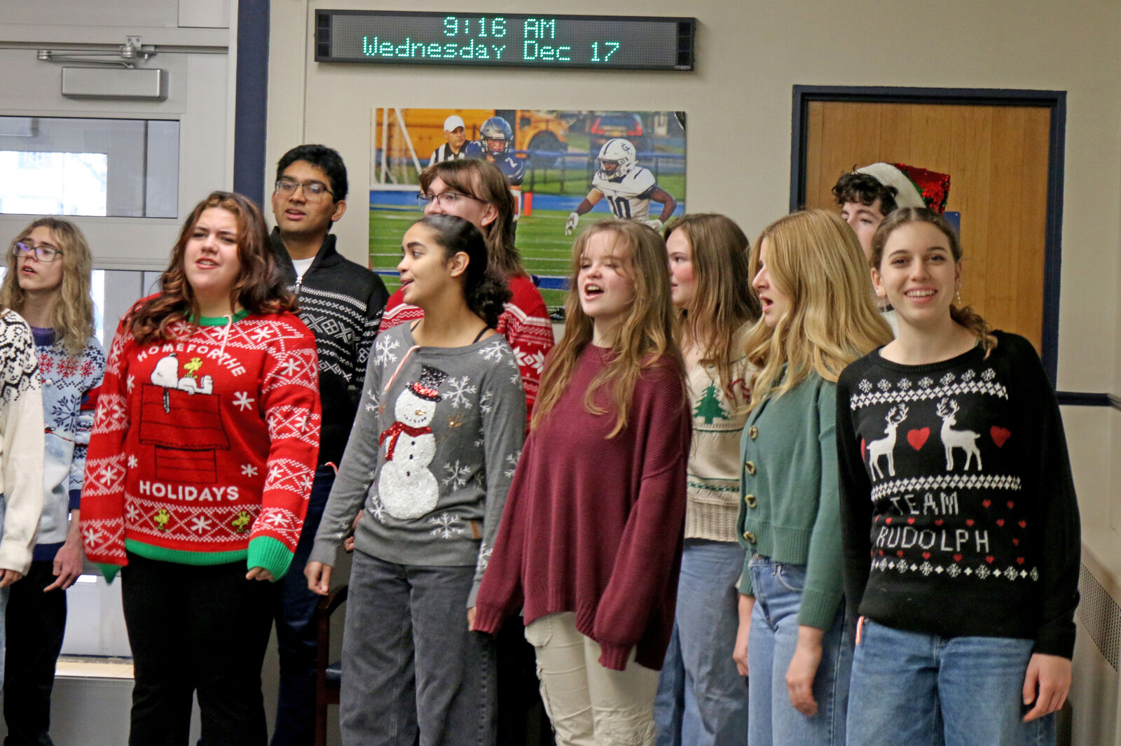 The Crazy Pitches, one of Brighton High School’s acapella groups, performed some holiday songs at the Central Administration Building on Wednesday, Dec. 17.